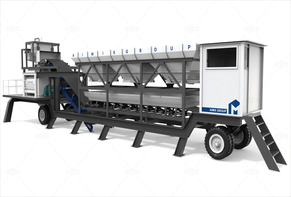 Integrated All-in-One Design: The mixing drum, batching unit, and control system are consolidated into a single trailer chassis, ensuring full mobility without dismantling. The plant can be easily transported across challenging terrains such as rural dirt roads or narrow alleyways.